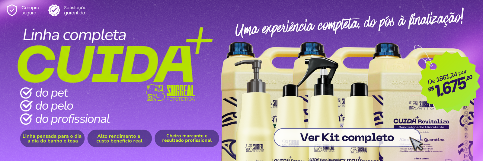 Mais do que um xampu, o CUIDA+ Fortalece é o segredo dos groomers que não abrem mão de qualidade. Com queratina hidrolisada e aloe vera, ele fortalece os fios, realça o brilho natural e deixa o pet com aparência saudável.